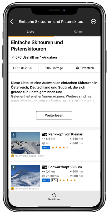 Sie möchten mit Skiern, Schneeschuhen, Schlitten oder per pedes auf Tour? Die gemeinsame App des Deutschen und des Österreichischen Alpenvereins sowie des Alpenvereins Südtirol hat den Plan. Ob perfekter Rodelhang, Skitouren oder Freerider-Tipps: Hier gibt es für alles Informationen und Kartenmaterial samt Navigation. Auch eine schnelle Suche nach Jausen- und Übernachtungs-Hütten gehört dazu. Wer gern eigene Wege geht, kann mit einem Tourenplaner individuelle Routen zusammenstellen.