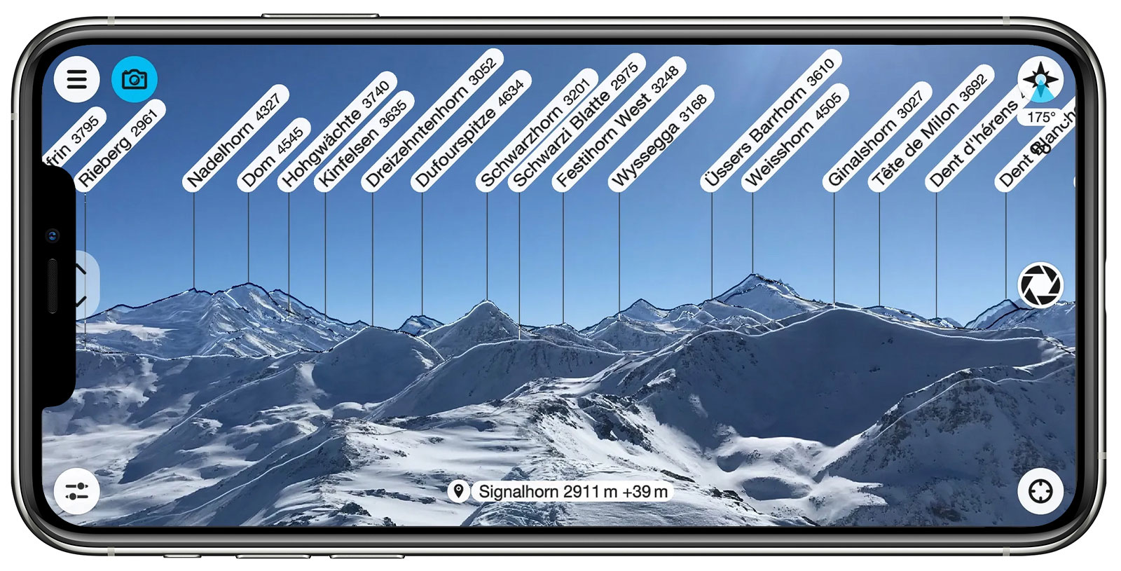 Super Ausblick – aber welche Gipfel bewundert man da gerade eigentlich? Diese App zeigt von jedem beliebigen Ort in der Welt ein Rundum-Panorama mit den Namen aller Berge. Nach Antippen eines Bergnamens stellt sie detaillierte Informationen über ihn bereit. Wer mag, kann virtuell den Berg hochfliegen und den Gipfel von oben sehen. Was hinter der Bergkette liegt, lässt sich ebenfalls mit der App entdecken. Natürlich bietet sie auch eine Fotofunktion, die auf Wunsch die Bergnamen hinzufügt.