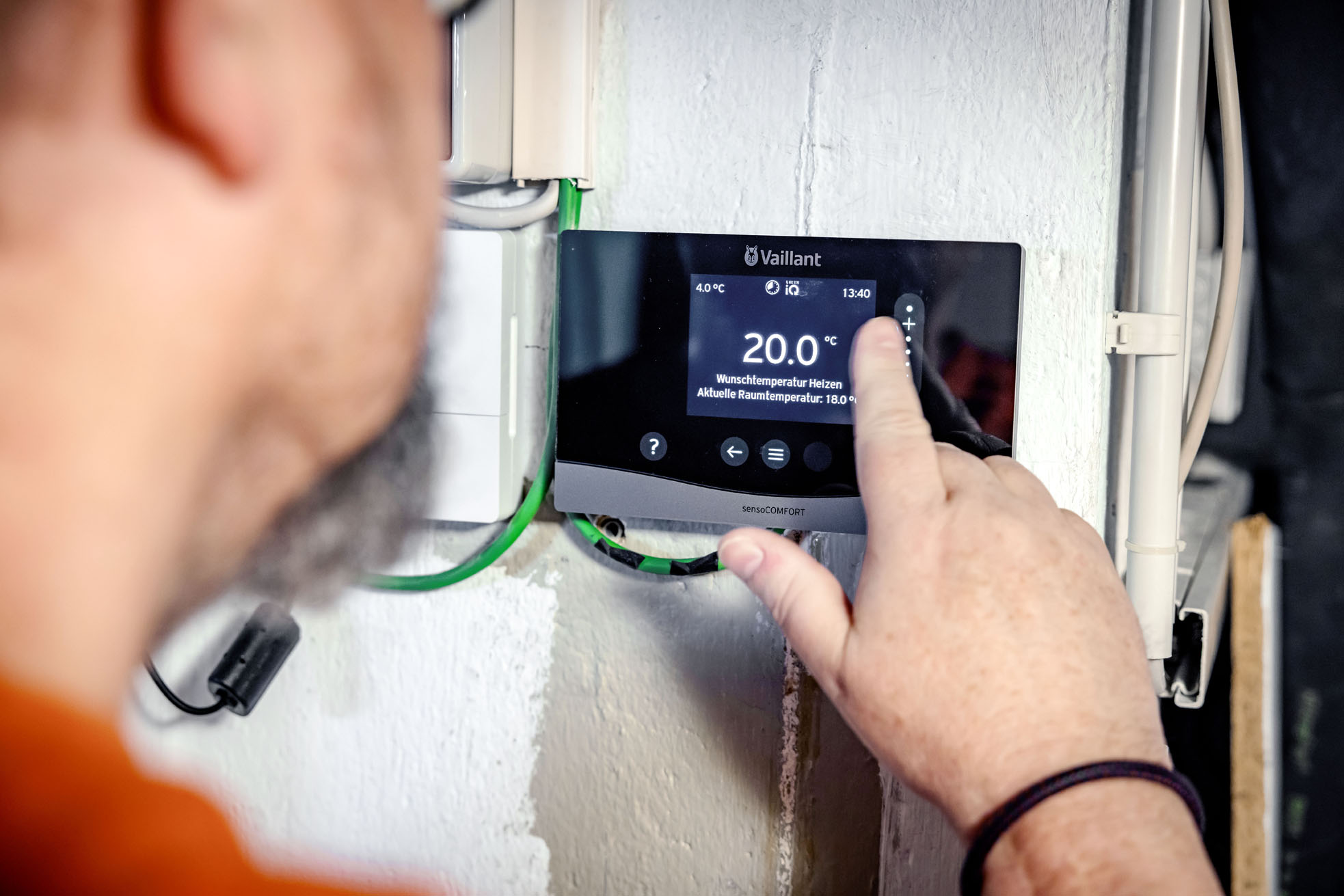 Er rät Hausbesitzer*innen, sich beraten zu lassen. „Ich war überrascht, wie viel bei einem Gebäude aus den 1970er-Jahren möglich ist." Er zieht sein Handy aus der Tasche: „Damit steuere ich ab jetzt meine Heizungsanlage."