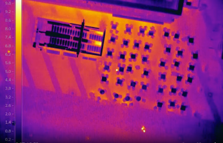 Die moderne Drohne ist mit zwei Kameras ausgestattet: Eine hochauflösende Thermografie-Kamera erkennt bereits geringste Temperaturunterschiede und macht sie in unterschiedlichen Farben sichtbar. Parallel zu den Thermobildern entsteht eine Realaufnahme zum Vergleich.