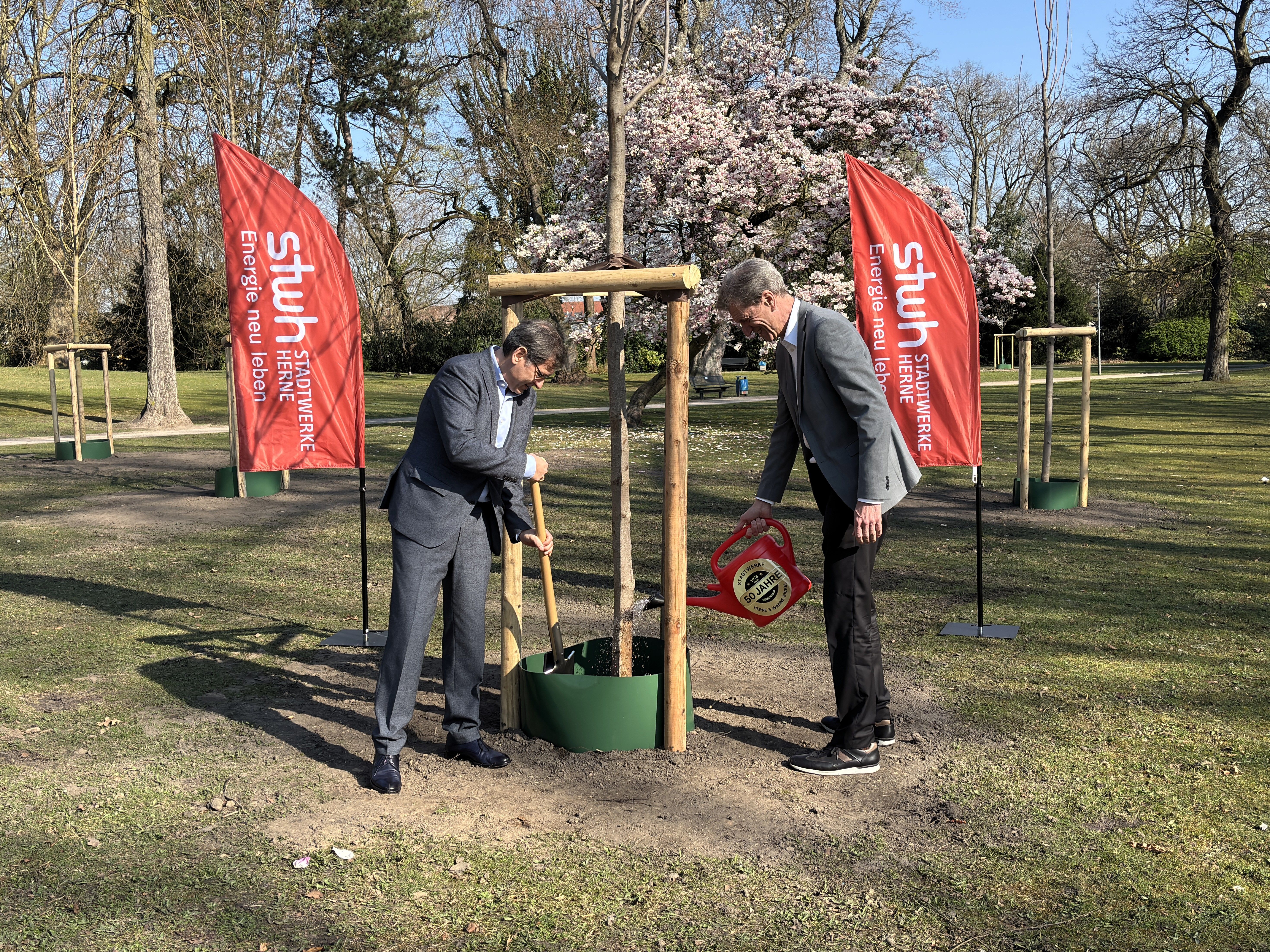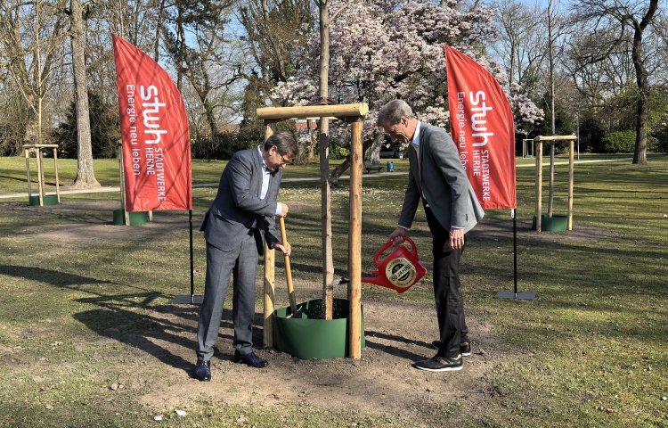 Vor 50 Jahren wurden die Stadtwerke Herne und die Stadtwerke Wanne-Eickel AG zu einem gemeinsamen Versorger für die gesamte Stadt zusammengeführt. Dieses Jubiläum begehen die Stadtwerke mit einer besonderen Aktion: Oberbürgermeister Dr. Frank Dudda, zugleich Aufsichtsratsvorsitzender der Stadtwerke, und Vorstand Ulrich Koch pflanzen gemeinsam Bürgerbäume in Wanne-Eickel und Herne.